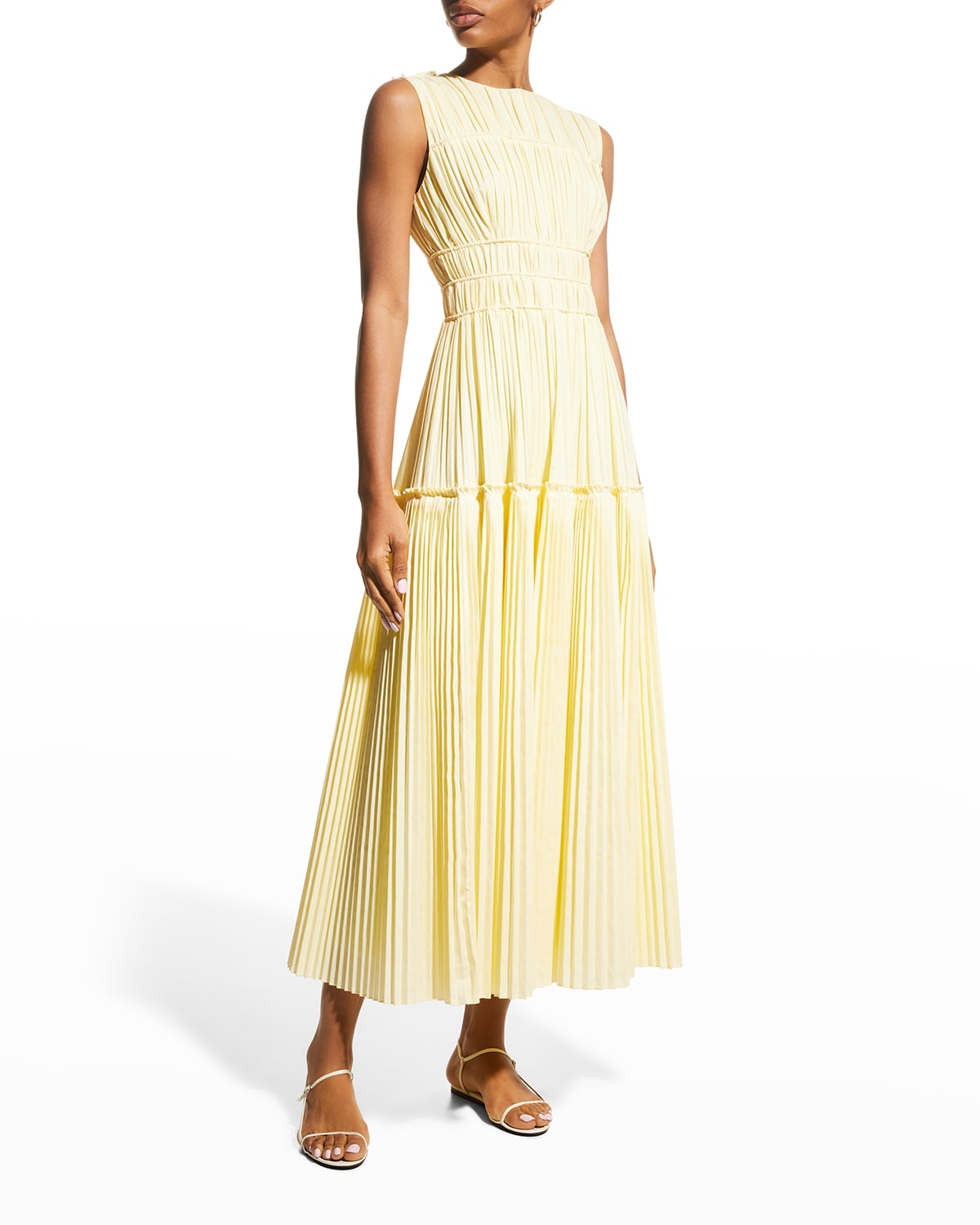 Lela Rose Cotton Poplin Pleated Midi Dress Neiman Marcus