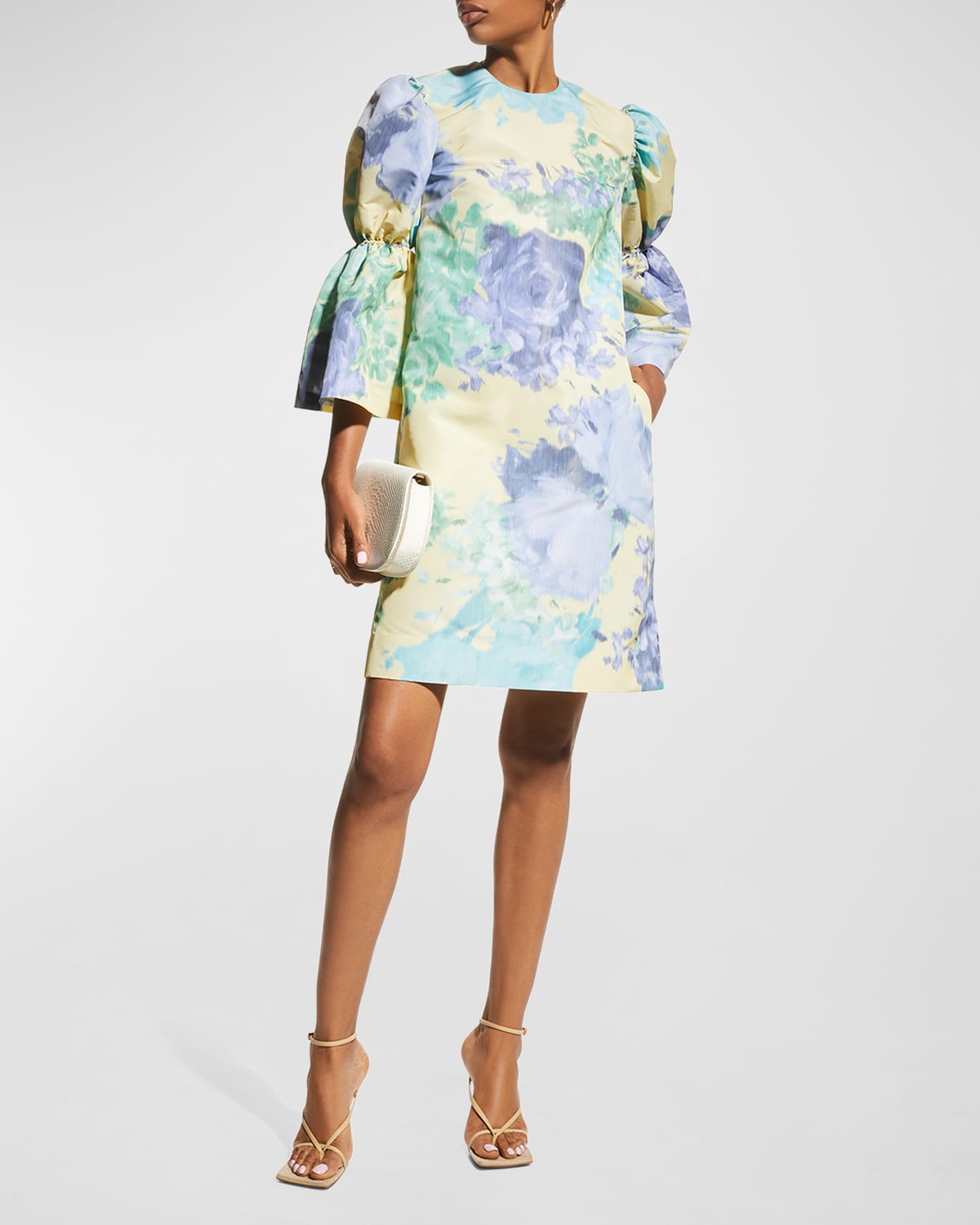 Lela Rose Floral Print Crepe De Chine Dress Neiman Marcus